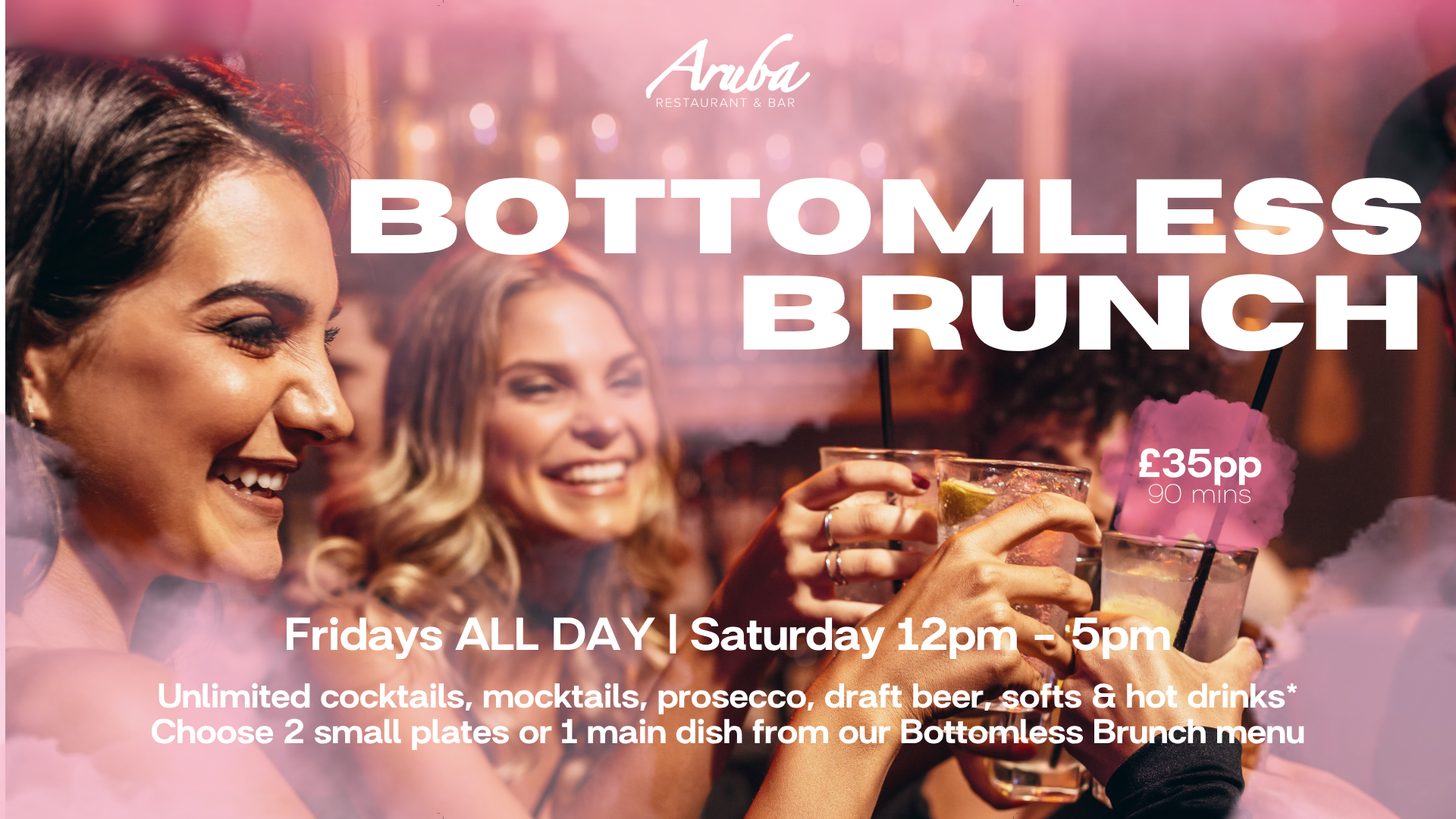 £35pp for 90 Minutes, Grab two small plates or one large plate with Bottomless Drinks, every Friday, Saturday and Sunday🍔🥂